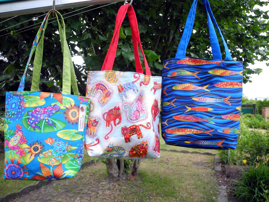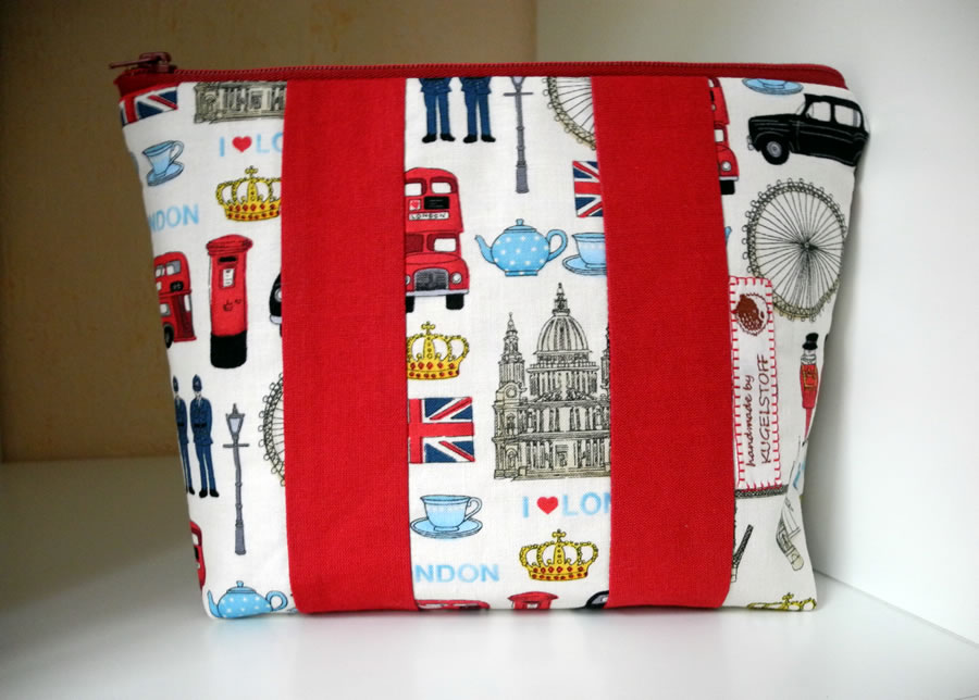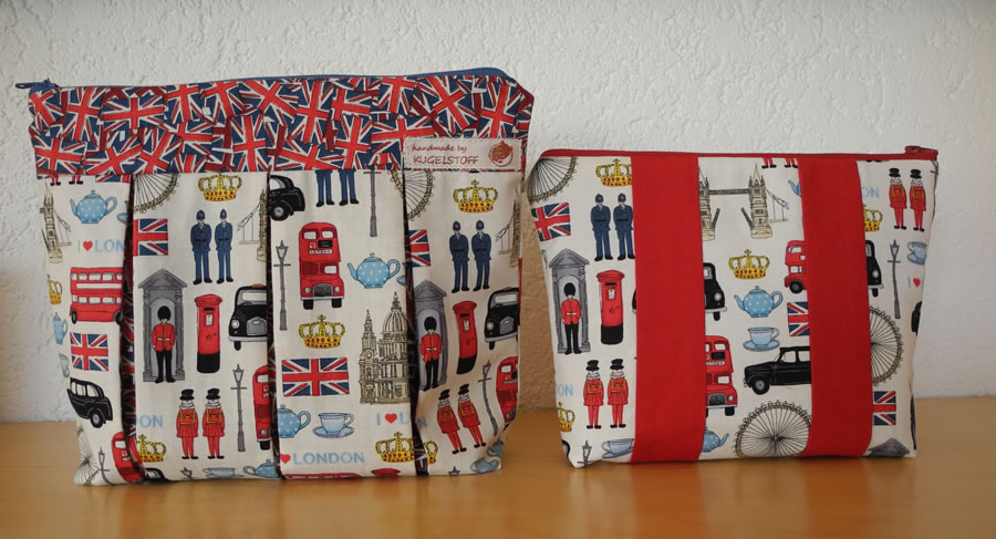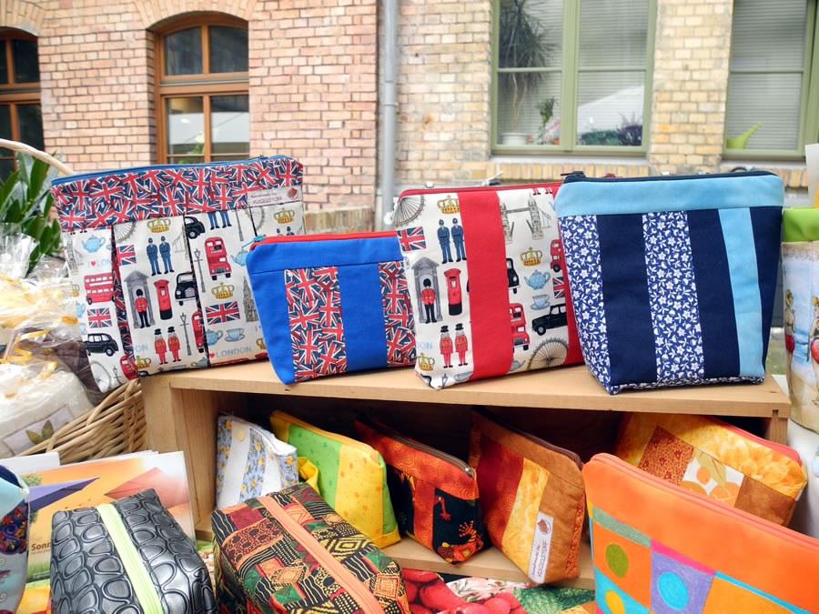 Hier die Ergebnisse: da ist zum Einem die Serie mit London-Motiven, die größere Tasche hat Kellerfalten und ist ca. 20 x 25 cm. Desweiteren das Täschchen mit der Blume, sieht doch allerliebst aus! Der Klassiker in blau-weiss kommt immer gut an, also gibt es auch wieder ein neues Täschchen in diesem Design. Und ich liebe die warmen Farben rot-orange-braun-gelb, wie man an vier weiteren Täschchen sehen kann.