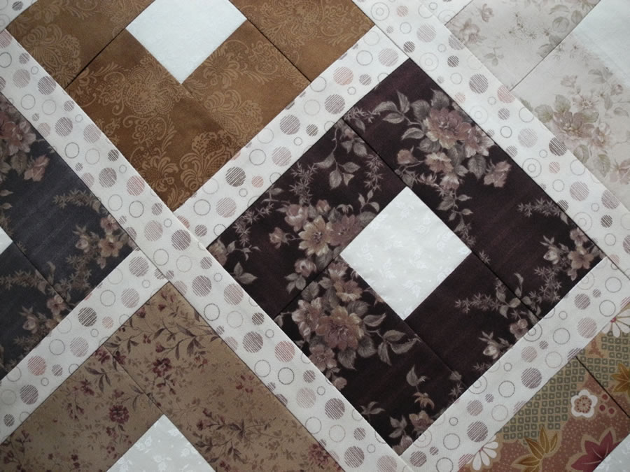 Dieses Päckchen ist von Ayumi, die ich im November letzen Jahres auf der Zukunftskonferenz in Berlin kennengelernt habe. Die Freude war groß und noch mehr habe ich über die vielen bereits zugeschnittenen Quadrate gestaunt. Es sind Reste von Kinderdecken, die ihre Schwester für ihre Kinder genäht hat. Mit dabei sind japanische und auch „westliche“ Stoffe, wie Ayumi schrieb. Die zarten Rosenstoffe haben mich zu dieser Decke inspiriert. Die zweite Decke ist im Blockhaus-Motiv mit ebenfalls japanischen Mustern.
