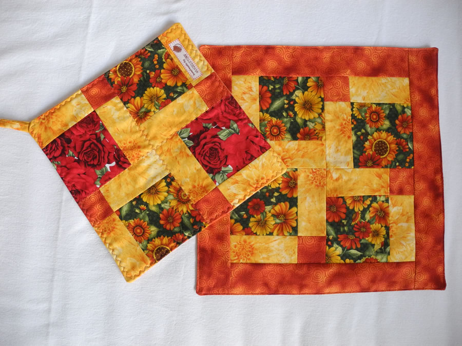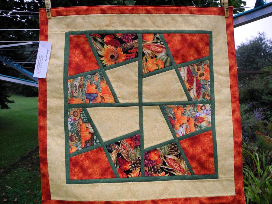 Ich liebe die Farben des Herbstes. Sie haben mich zu diesen farbenfrohen Patchwork-Deckchen inspiriert. Die Apfeldecke und die Blumendecke basieren auf einem 9-er Block. Dieser wurde zweimal durchgeschnitten und die entstandenen 4 Teile dann gedreht. Mit diesem Block werden wir auch in meinem Einsteigerkurs in der VHS Halle beginnen. Die Kürbisbild-Decke ist in Mosaiktechnik genäht.