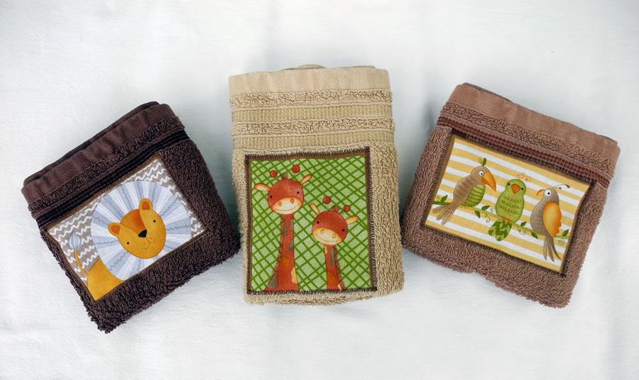 Diese Handtücher für die Kleinen sind heute fertig geworden, Zu dieser Idee hat mich Karin D. inspiriert, die ich im Sommercamp kennengelernt habe. Sind sie nicht herzallerliebst, die Tiere aus Afrika? Ihren Namen können die Kleinen ja noch nicht lesen, aber dass das Handtuch mit dem Löwen ihr Handtuch ist, wissen sie ganz genau.