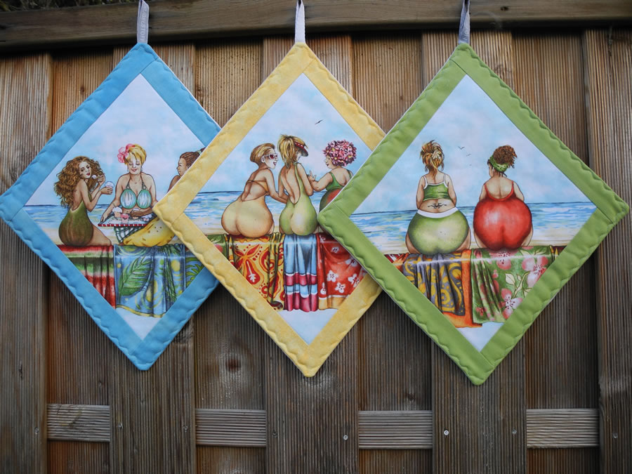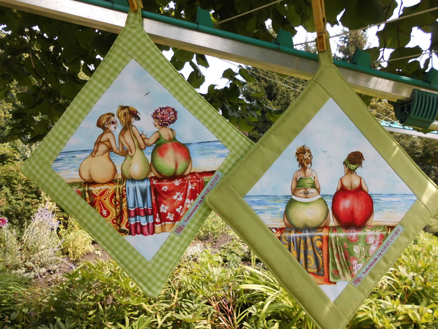 Seit dem 19.Juni 2014 gibt es meine Badetaschen mit den witzigen „Badefrauen-Motiven“ in der Dessauer Boutique STILVOLL - das Fachgeschäft für mollige Mode. Jede Tasche ist ein Unikat, das von mir mit viele Liebe und Sorgfalt gefertigt wurde. Die liebevoll gestalteten und originellen Frauen setzte ich mit einem farbenfrohen Rahmen unterschiedlich in Szene. Manch eine wird auch mit einem Zierstich verschönert. Die Taschen haben meist ein abwischbares Innenfutter aus Kunstleder, Wachstuch oder beschichteter Baumwolle. Eine Geschenkidee mit der Sie auf jeden Fall punkten können.