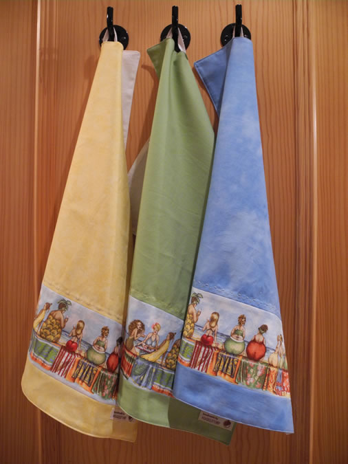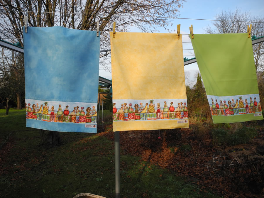 Sind sie nicht allerliebst diese Küchendekos! Das dekorative Geschirrtuch und die beiden allerliebsten Topflappen zieren nun die Küche meiner Kundin. Ihr Kommentar: „Jetzt muss ich nur noch meinem Mann beibringen, dass er sie nicht zum Geschirr abtrocknen benutzt.“