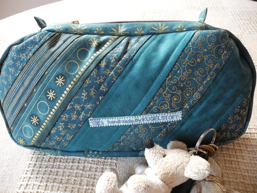Das Buch „Japanische Quilts“ von Yoko Saito hat mich fasziniert. Als Ergebnis der vielen Anregungen in diesem Buch ist nun meine neue Konzerttasche entstanden. In einer meiner Lieblingsfarben Petrol wirkt die Tasche sehr elegant und festlich, genau das Richtige für die im Oktober wieder beginnende Konzertreihe „Sinfoniekonzerte am Sonntag“ in der Händelhalle.