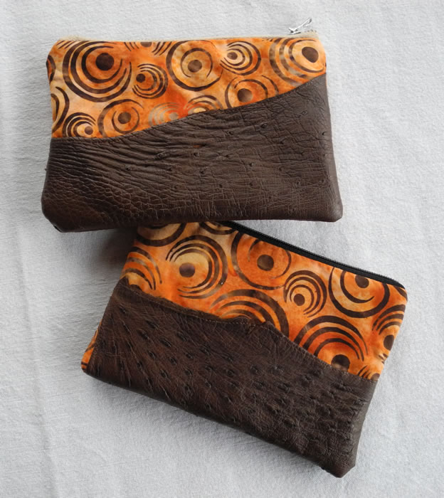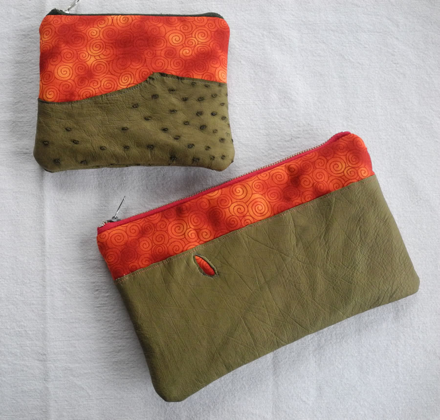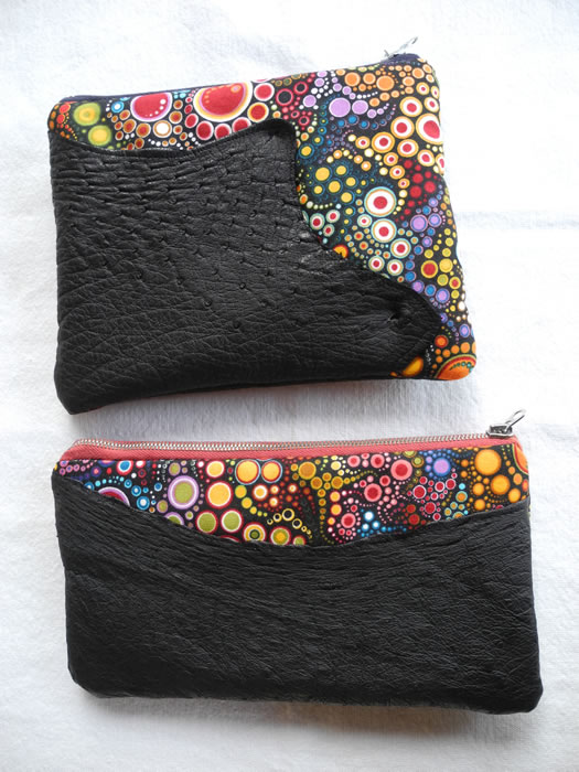 Sabine Scholz vom Straußenhof in Stichelsdorf habe ich auf dem „Kleinen Markt“ in Merseburg Anfang November kennengelernt. Sie sah dort meine farbenfrohen Patchworktaschen und meinte, wir könnten doch zusammen etwas machen. Straußenleder ist sehr hochwertig, weich und erkennbar an den typischen Noppen. Dort waren die Federn. Meine Idee war, das Straußenleder mit schönen Stoffen zu kombinieren. Hier seht Ihr meine ersten diesbezüglichen Kreationen.