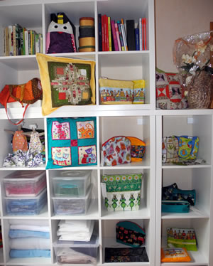 Im Juli diesen Jahres war es nun soweit, das Atelier bedurfte einer Erweiterung. Außer meinem Atelier mit Fensterarbeitsplatz und Fläche zum Ausbreiten aller möglichen Materialien bei der Ideenfindung oder Stoffauswahl zusammen mit Kunden, gibt es jetzt einen zweiten Raum. In dem es ein schönes großes Regal gibt, in dem ich unter anderen meine Stoffe sortieren und die fertigen Arbeiten präsentieren kann, und in dem ich außerdem Platz für das Bügelbrett und viel Fläche zum Auslegen der Stoffe habe.