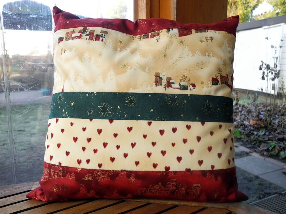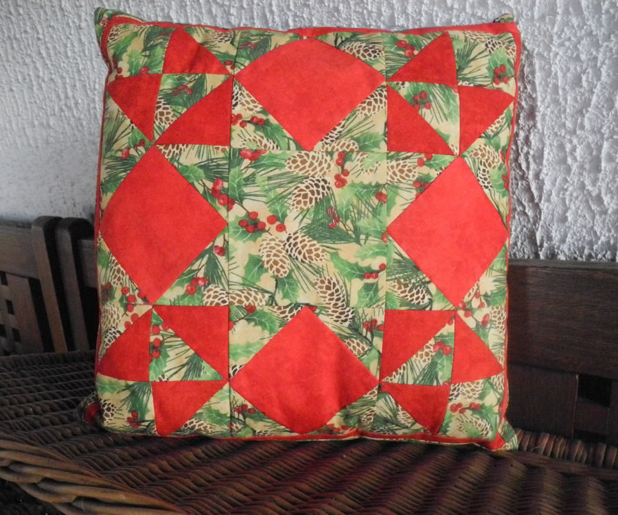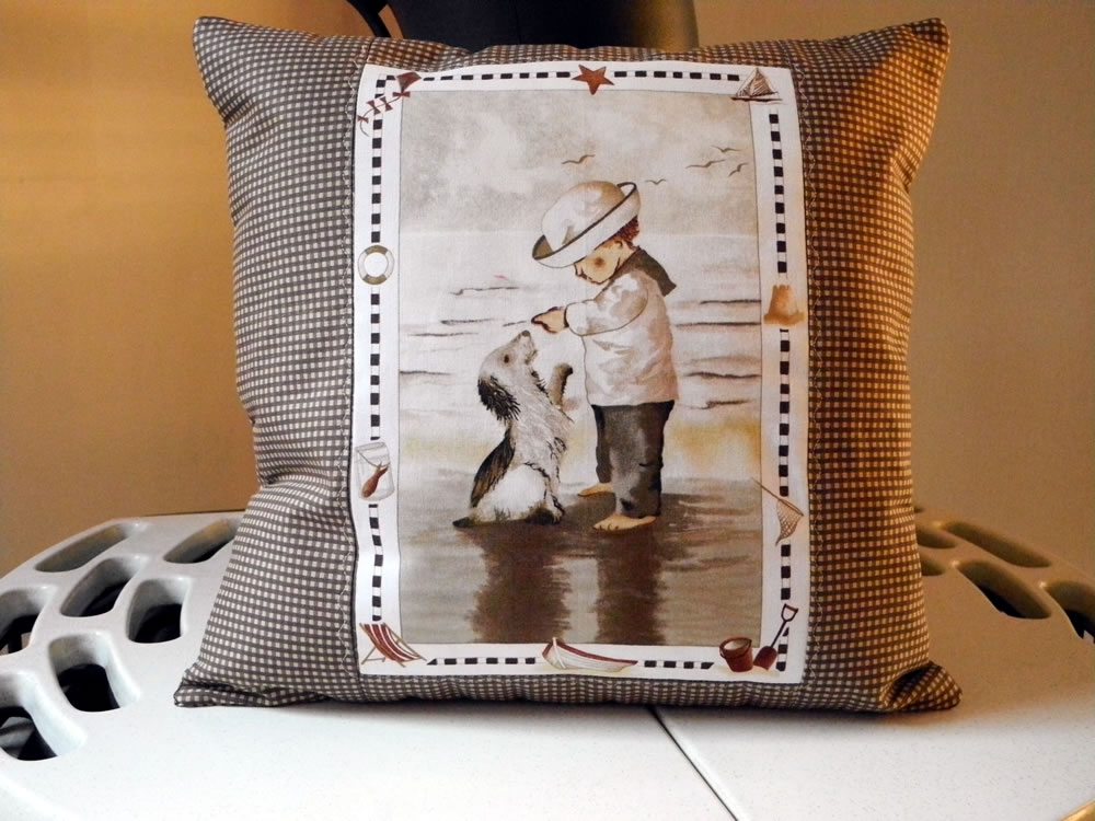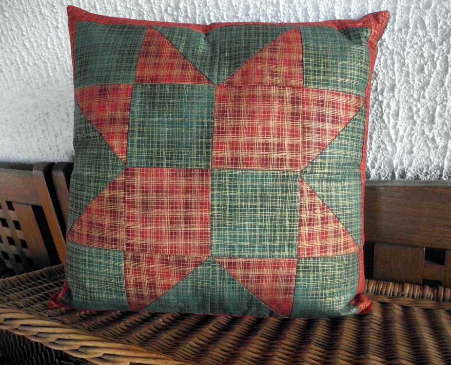 - Kissen mit Blockhaus–Muster sind chic für Oma Erikas Sofa